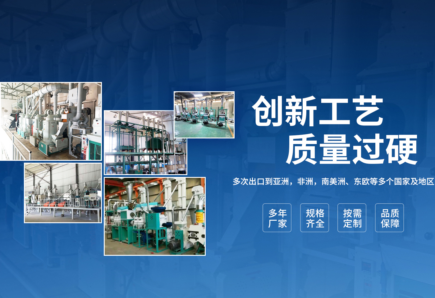 安陽市龍泰糧油機械有限公司是一個集糧油機械設計、生產制作、安裝于一體的設備制造商。公司坐落于農業生產基地河南省安陽市。多年來,公司與科研機構建立了廣泛的技術協作關系,精心致力于糧食加工設備的技術創新與應用,產品涵蓋整套碾米機械、小麥加工設備、玉米加工設備、雜糧加工設備,飼料加工及油脂設備等多個領域。可承接全套的交鑰匙工程,提供從資金預算,整體規劃,土建設計,設備制造、安裝、培訓,售后保障等一站式服務。 我公司擁有獨立自主進出口權及產品原產地注冊證書。產品除國內市場外,多次出口到,亞洲,非洲,南美洲、東歐等多個國家及地區。為國內外多家企業提供了工藝先進,技術過硬,節能的糧油設備,深得國內外客戶的一致好評。 公司以“質量就是生命”為宗旨,根據客戶不同需求,采用合理的技術方案,為客戶量身打造投資建廠方略,爭取實現高收益。公司生產過程嚴格按照合同和圖紙設計要求,生產符合設計標準、檢測標準、質量優良的產品供給客戶,并提供安裝、調試、培訓,保修期免費維修,終身免費咨詢等服務,確保設備在長期使用中穩定運行?! ↓執?愿與您一起攜手共創輝煌!